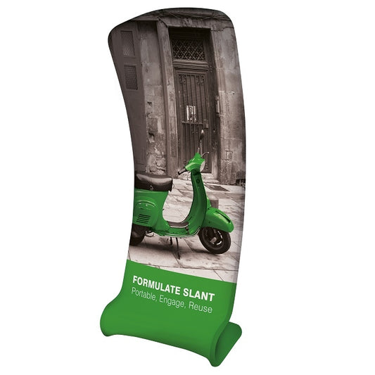 Curved trade fair wall with textile print Formulate