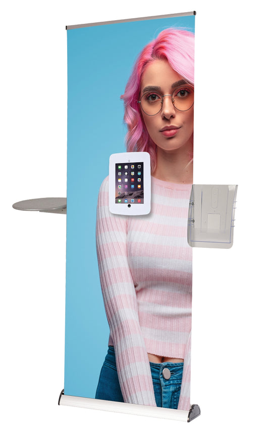 We offer you the right solution and the right advertising systems for every event, exhibition, conference or trade fair. Our highlights: Premium roll-up systems with interchangeable cassettes, budget roll-up systems with digital printing in a variety of designs and widths, textile displays for a quick and comfortable presentation, large format banner displays with a great impact, table banner displays, advertising stands, roll-up accessories such as monitor holders, brochure holders , lighting and shelves.